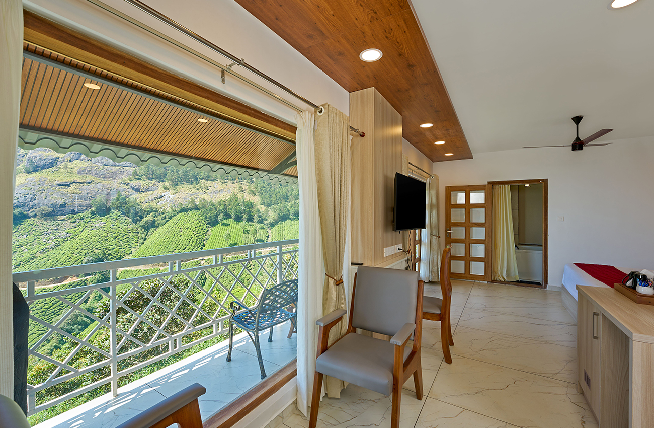 Experience luxury and tranquility in our Jacuzzi Room, where nature's calm meets indulgent comfort. Surrounded by lush greenery and misty mountains, this premium room features a private indoor Jacuzzi, perfect for unwinding after exploring Munnar's beauty.